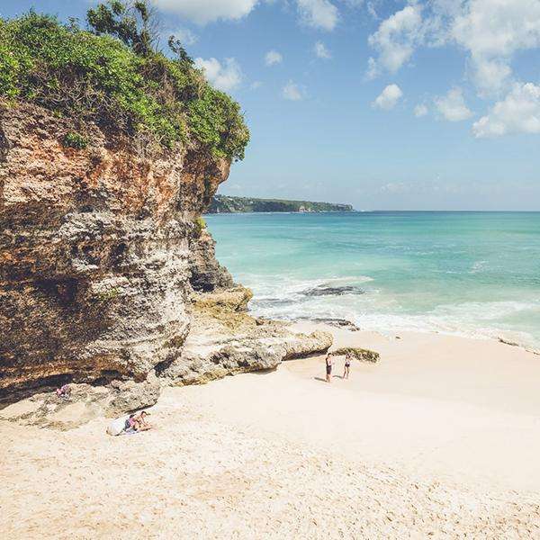 Uluwatu is located on the south coast. You will find the most beautiful white sand beaches, ultimate surf spots, the truly tropical accommodations of crazy luxury hotels or villas if you like them, but also very small beachy surf shags, Balinese temples and delicious food. And most of all but I usually don't have time for that anymore, magical cliff-top sunsets.